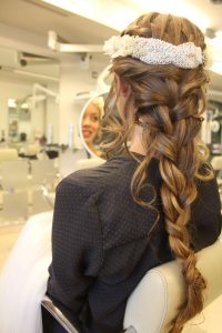 Existen muchos tipos de trenzas, por lo que se abre un gran abanico de posibilidades durante tu elección: trenzas laterales, en cascada, a modo de headbrand simulando una corona…Se trata de un peinado muy desenfadado perfecto para bodas de estilo rural o vintage. Además, no es necesario que tengas el pelo largo, con unas buenas extensiones o postizos para novias es posible trenzar cualquier melena. ¿Qué os parece esta que hicimos para una de nuestras novias?