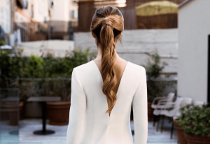 Además, los vestidos de novia de otoño e invierno suele tener menos escote o lo llevan en la espalda, por lo que el pelo recogido todavía es más favorecedor. Por un lado estilizan mucho la parte del cuello, dejándolo completamente al descubierto, y por otro reafirman el área de las mejillas.